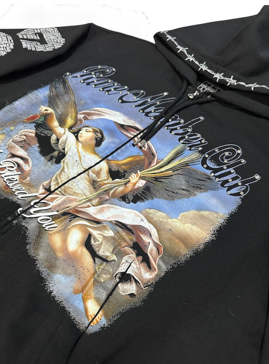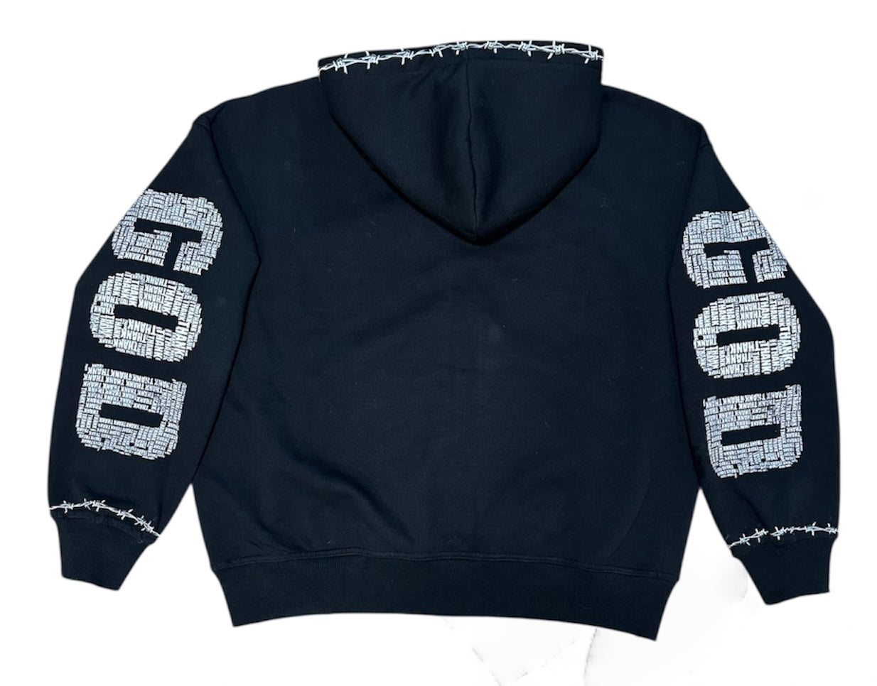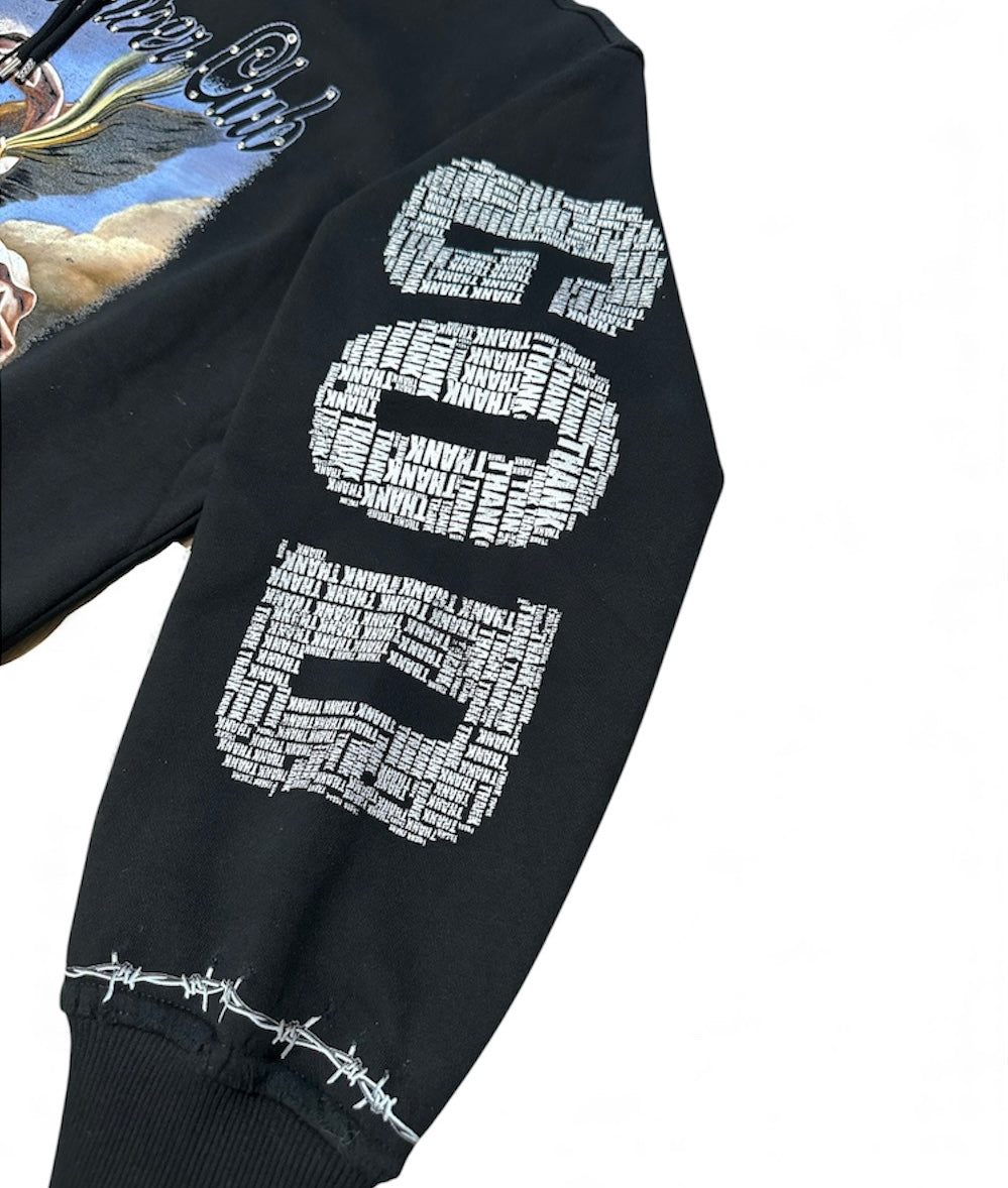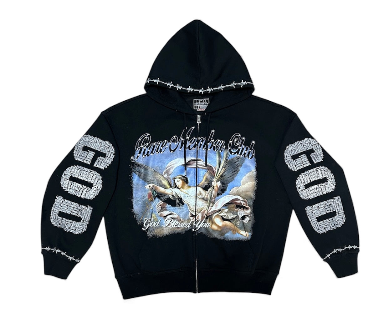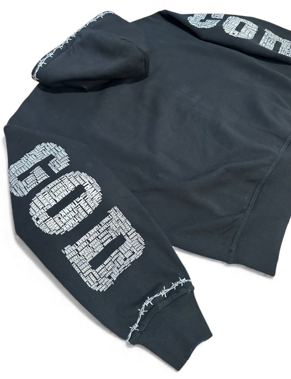 GOD BLESSED YOU Zip-Up Hoodie Embrace effortless style with this oversized zip-up hoodie, designed for maximum comfort and contemporary appeal. The distressed detailing throughout adds character and visual depth, while the relaxed fit delivers that coveted oversized silhouette without sacrificing wearability. True-to-size construction ensures a perfect fit straight out of the box. Crafted for those who prioritize comfort without compromising on aesthetic, this piece transitions seamlessly from casual loungewear to streetwear staple. An essential addition to any wardrobe seeking versatile, laid-back sophistication.